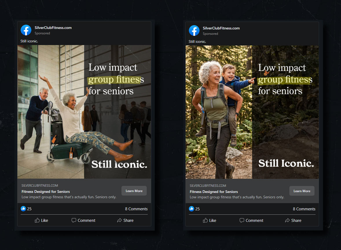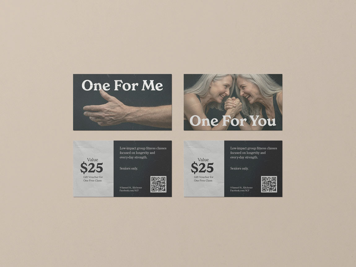 Silver Club Fitness runs low-impact, seniors-first group fitness classes that build real friendships and celebrates the coolest generation alive. It was born as a project for my Marketing Foundations and Marketing Research & Analytics courses at Western University (I got 100% in both classes, yes I'm bragging), and I couldn't help but want to visualize it as a fully designed awareness campaign.